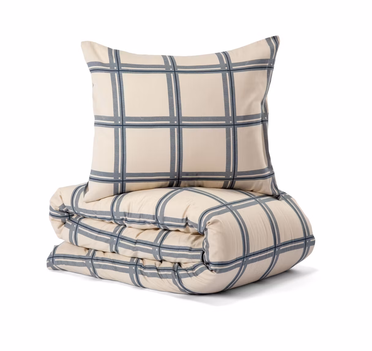 Bäddset Norgård Satin Beige 150x210 – Klassisk rutdesign i lyxig bomullssatin