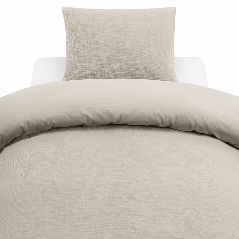 Den krinklade strukturen ger ett levande uttryck, medan den täta bomullsväven erbjuder en sval, lyxig känsla – precis som på hotell.