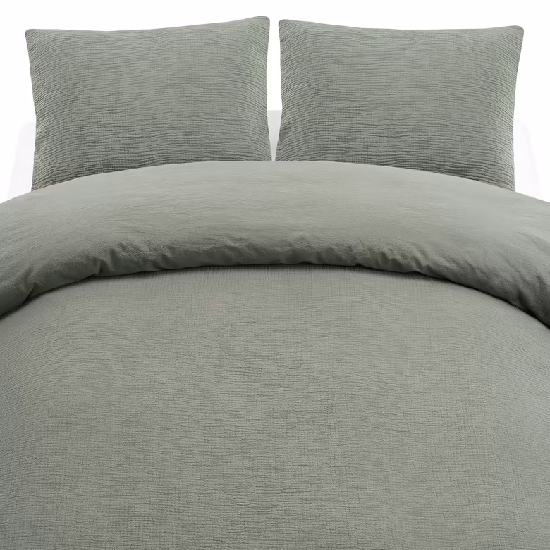 Rolling har en krinklad framsida som ger sängen ett levande uttryck och en slät baksida som känns mjuk mot huden.
