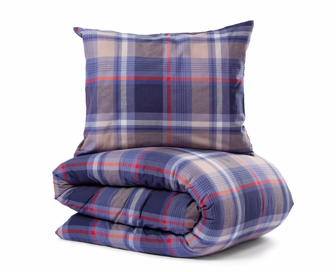 Bäddset Stigen Garnfärgad Marinblå 150x210 – Klassisk rutdesign i mjuk bomull