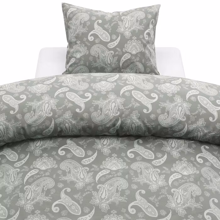 Det vackra paisleymönstret i gröna toner skapar en harmonisk atmosfär, medan det mjuka, följsamma tyget gör det till ett rent nöje att krypa ner i sängen.