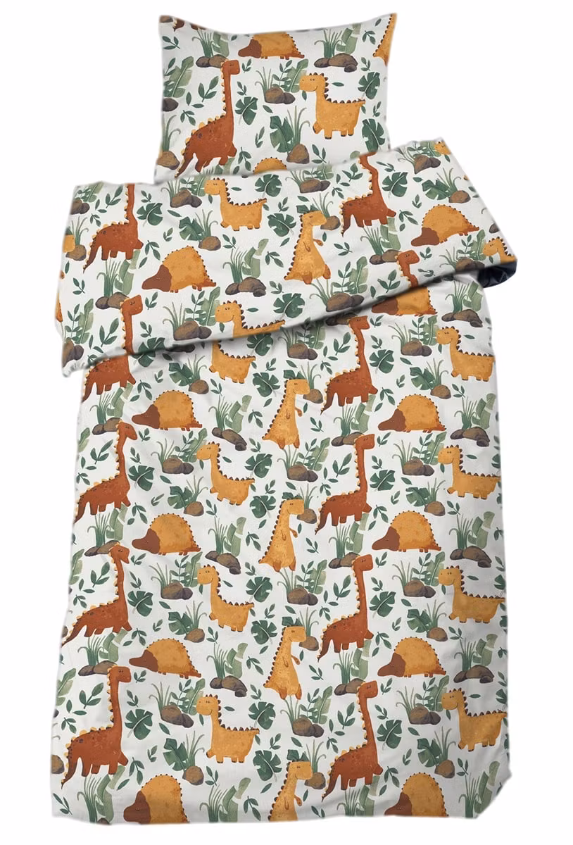 Danilo Gul bäddset från Redlunds är ett roligt och inspirerande bäddset som snabbt blir en favorit i barnrummet. Med sitt livfulla mönster av dinosaurier i gula och orangea toner väcker bäddsetet både nyfikenhet och fantasi. Här kombineras lekfull design med skön komfort – perfekt för barn som älskar dinosaurier och vill känna sig trygga när det är dags att sova.