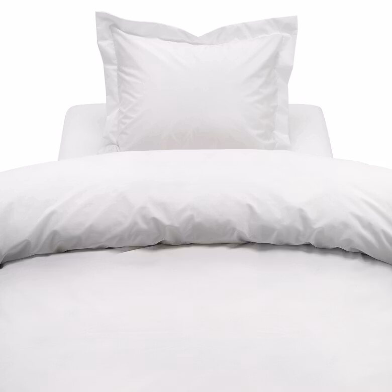 Bäddsetet är percalevävt i fintrådig egyptisk bomull med en hög trådtäthet på 230 TC, vilket ger en sval, krispig och samtidigt mjuk känsla mot huden. Den släta ytan och den täta väven skapar ett exklusivt uttryck som påminner om nybäddade hotellakan. Det vita utförandet ger ett tidlöst och elegant intryck som passar alla typer av sovrum och inredningsstilar.