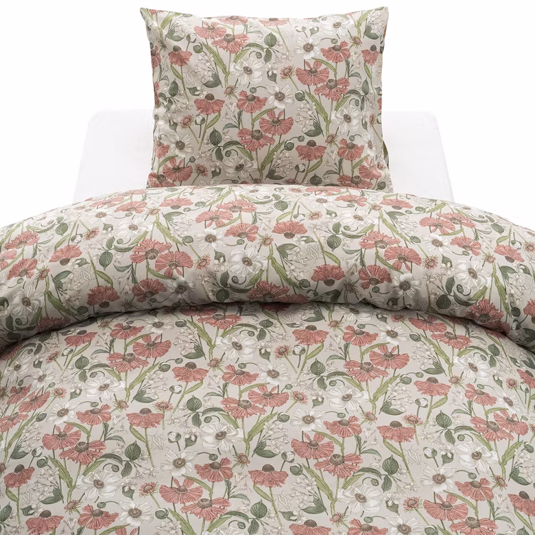 Fleur Rosa Bäddset Enkeltäcke 150x210 cm – Somrig blomsterdröm från Borganäs of Sweden