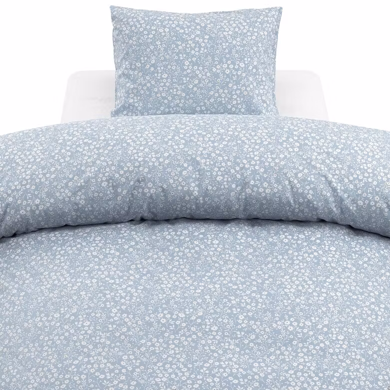 Hedda Ljusblå kännetecknas av sitt romantiska och våriga småblommönster som ger sovrummet ett ljust och inbjudande uttryck. Den ljusblå färgtonen skapar en fräsch bas medan de vita blommorna tillför lätthet och elegans, vilket gör bäddsetet enkelt att kombinera med både ljusa och neutrala inredningsdetaljer.