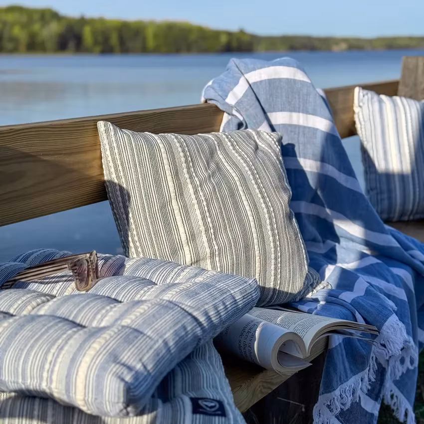 Strukturen i tyget framhäver den genuina hantverkskänslan och gör varje kuddfodral unikt i sitt uttryck.