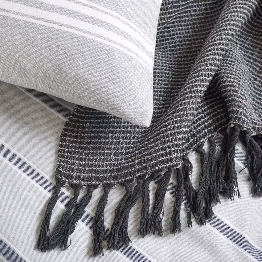 Ge ditt hem en tidlös och harmonisk känsla med Pläd Valter mörkgrå/grå 130x170 cm från By Wille.