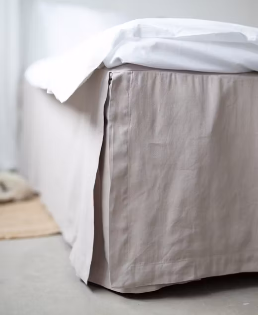 Sängkappan är tillverkad i halvpanama-väv, en vävteknik som ger tyget en lätt strukturerad yta med ett robust och gediget uttryck. Den mjuka greige-nyansen – en elegant blandning av grått och beige – gör kappan enkel att matcha med såväl ljusa som mörka bäddset och passar perfekt in i både moderna och klassiska sovrum.