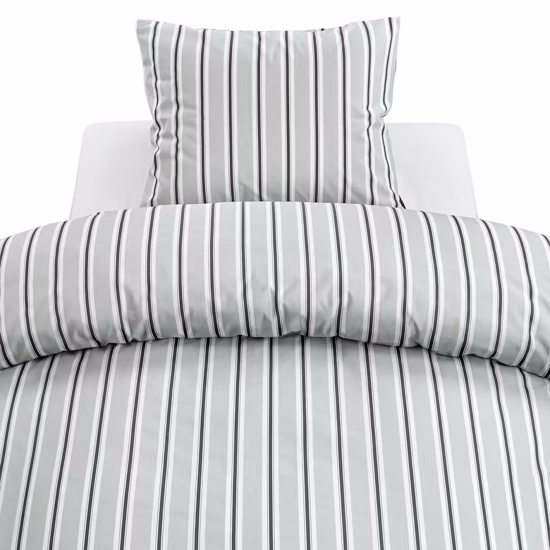 Sunnan Rand Grön kännetecknas av sitt stilrena men uttrycksfulla randmönster. De lodräta ränderna ger ett elegant och modernt uttryck samtidigt som färgkombinationen i grönt och vitt skapar en fräsch och harmonisk atmosfär i sovrummet. Designen gör bäddsetet lätt att kombinera med både neutrala och färgstarka inredningsdetaljer.