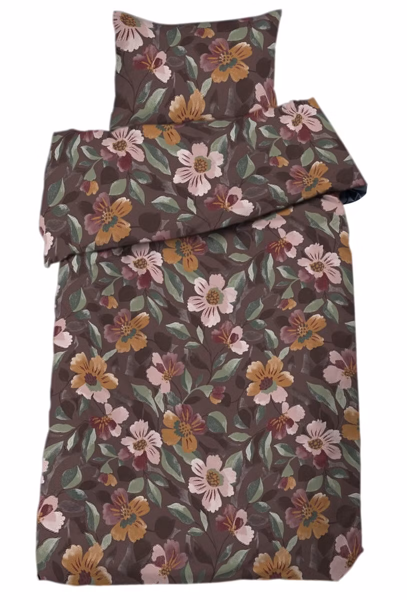Vera Brun bäddset från Redlunds är ett vackert och uttrycksfullt bäddset som kombinerar romantisk blomsterdesign med behaglig komfort. Det stora blommönstret i mjuka rosa och varma orange nyanser skapar liv och rörelse, medan den djupt bruna bottenfärgen ger en elegant kontrast. Ett perfekt bäddset för dig som vill bjuda in vårens och sommarens färger i sovrummet året runt.